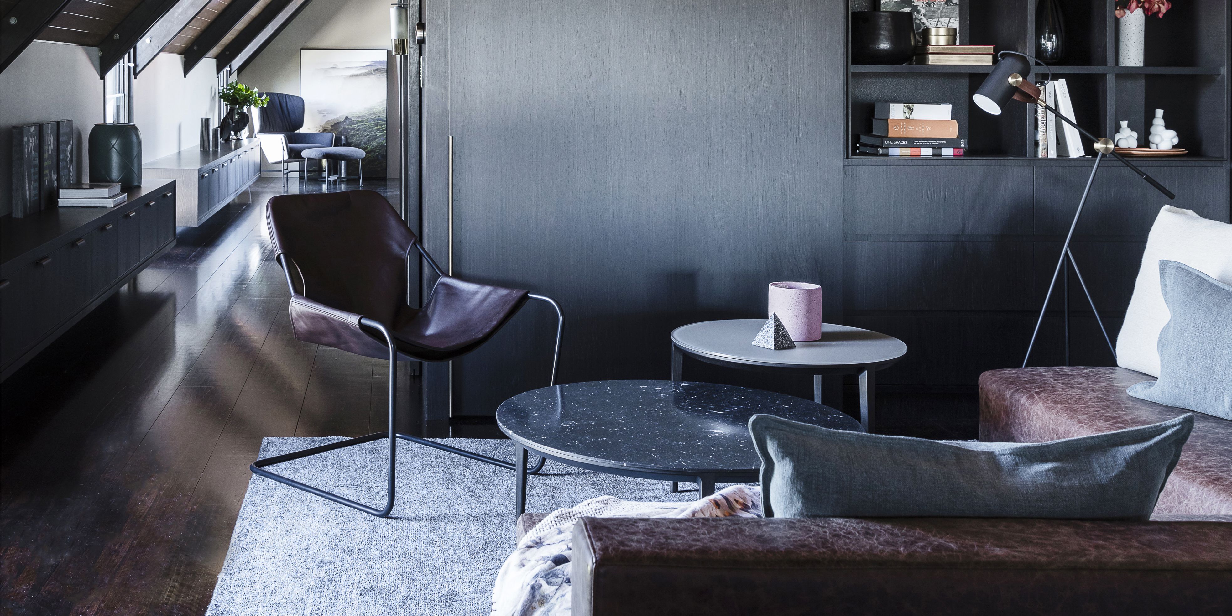 A moody blue lounge room with exposed timber beams has taken out Australian House & Garden’s room of the year for 2018.