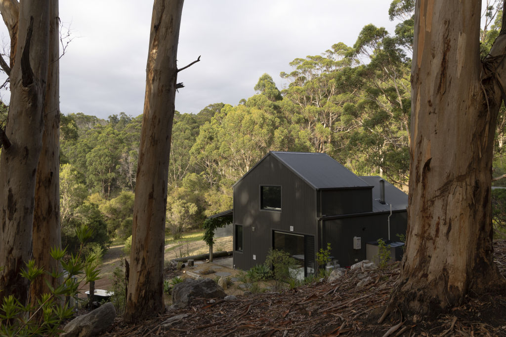 Perfectly positioned to take in the undulating landscape, the corrugated shell remains. Inside, it’s a whole new story: Stillwood is part bush retreat, part designer hideaway.