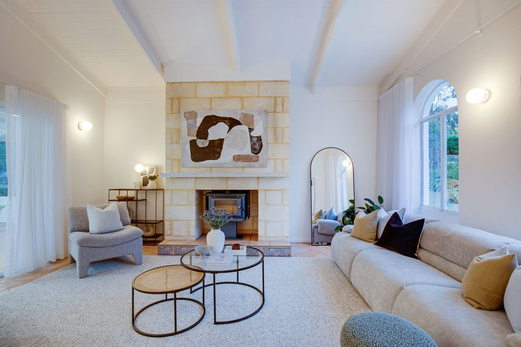In the winter months, you can gather around the striking limestone fireplace upgraded with a Jarrahdale wood-burning heater.