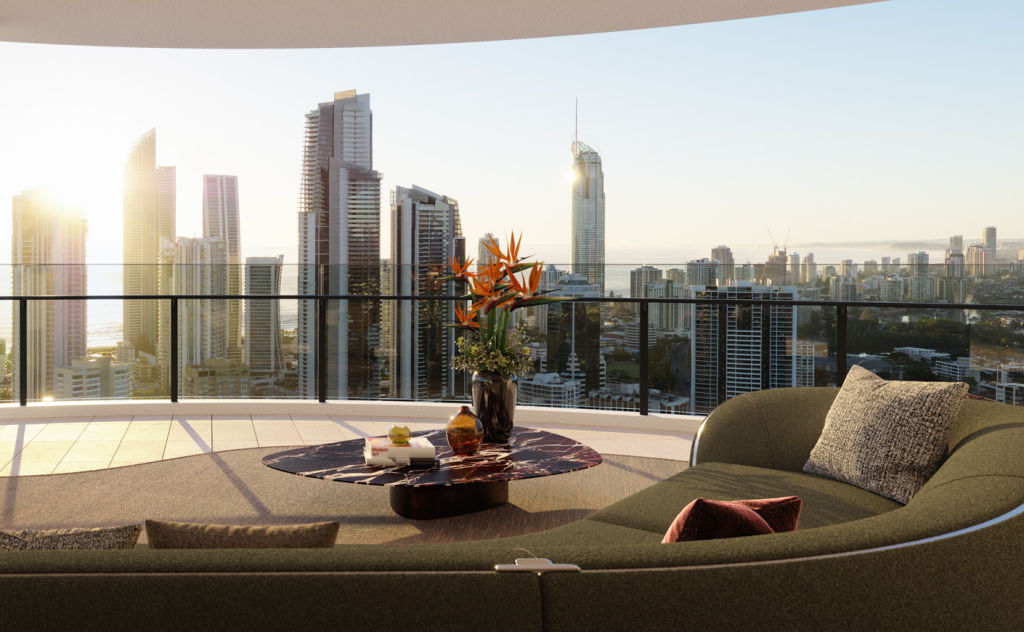 “With its height and location, the apartments boast panoramic views of the ocean, Nerang River, the hinterland and the city skyline,” says Mark Nelson, general manager of sales and marketing at Bensons Property Group.