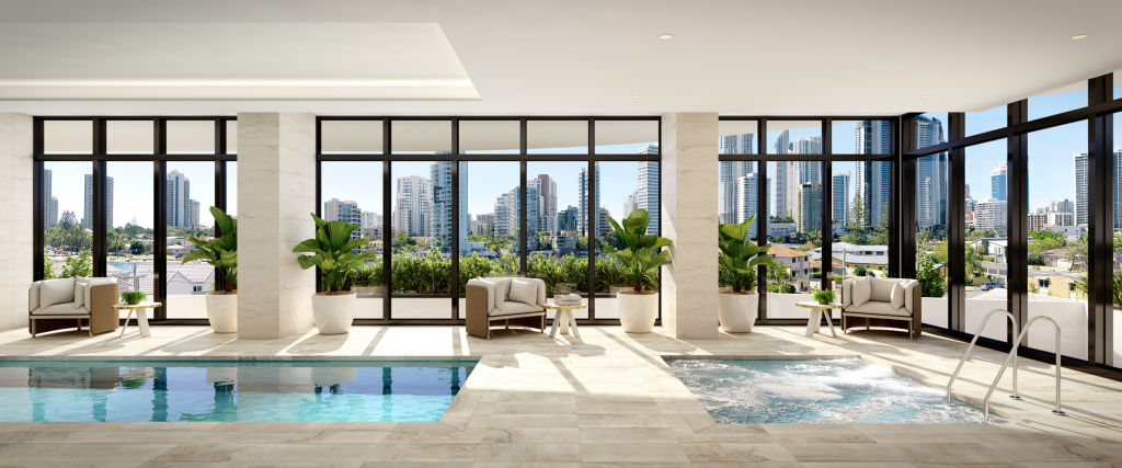 Due for completion in early 2026, Chevron One features thoughtful communal areas integrated into 2000 square metres of resort-style spaces. Think multiple swimming pools, a spa, gymnasium, dining options and a yoga and sculpture garden.