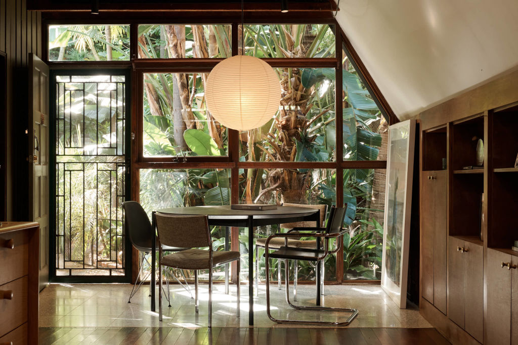 The elevated home is perched among the treetops. Mandorff and Brock have loved the way the lush rainforest embraces the house, with palms and natives outside every window.