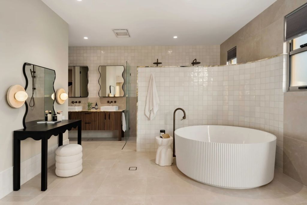 Designed with his family in mind, O’Doherty says the floor plan is “incredibly optimised” to be highly functional and livable. The layout features five bedrooms, four bathrooms, a home office, a media room, a rumpus room and an open-plan kitchen-living-dining area.
