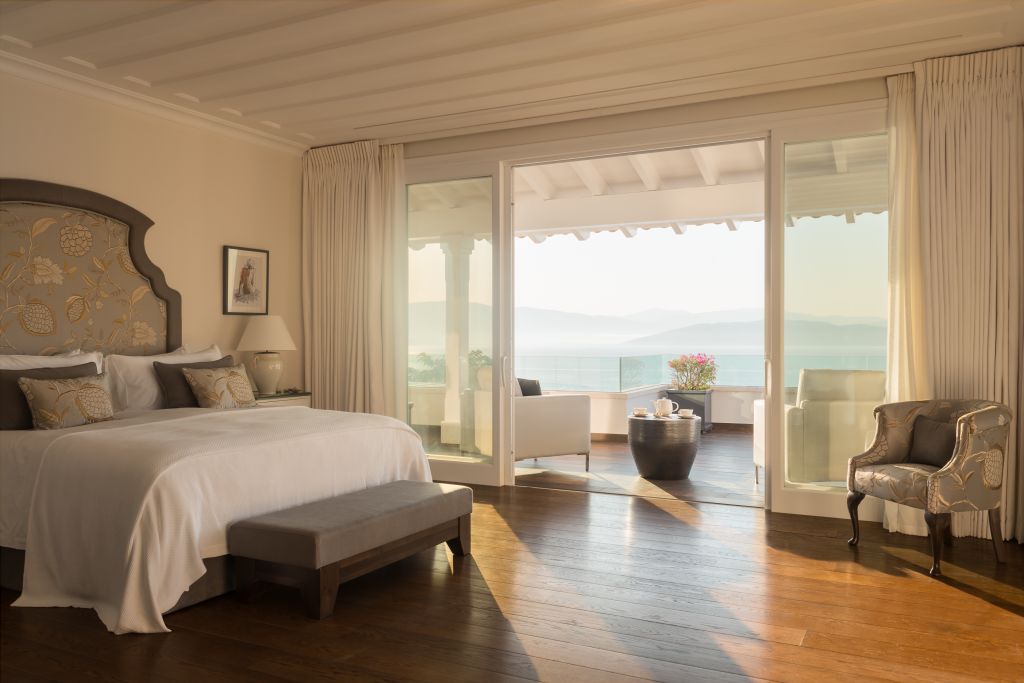 “The gates open, the hillside falls away, and the Ionian fills the frame,” says Despina Laou, head of private office at Greece Sotheby’s International Realty. “It’s a cinematic reveal – first awe, then calm. Absolute privacy paired with understated elegance and a genuinely homely feeling.”