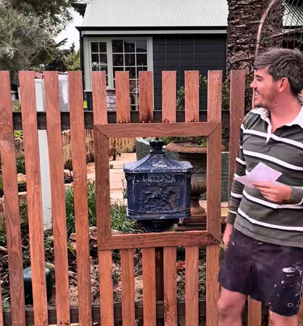 “So Jordan thrifted this vintage mailbox for $100 and made me cut a hole in my perfect fence,” Dane said.