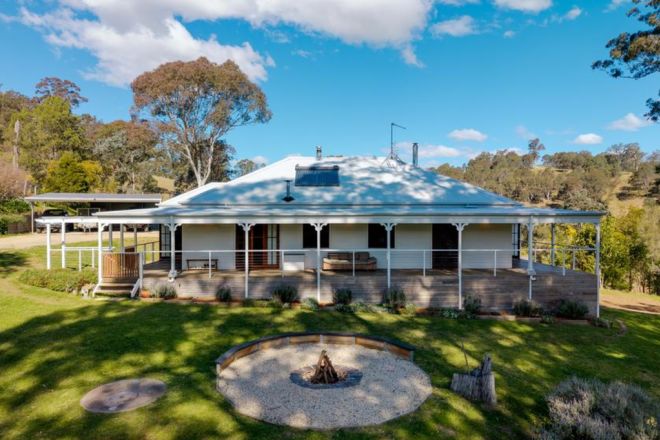 Set on 10 hectares, this country-style home features a weatherboard exterior, a wraparound verandah and well-kept interiors.