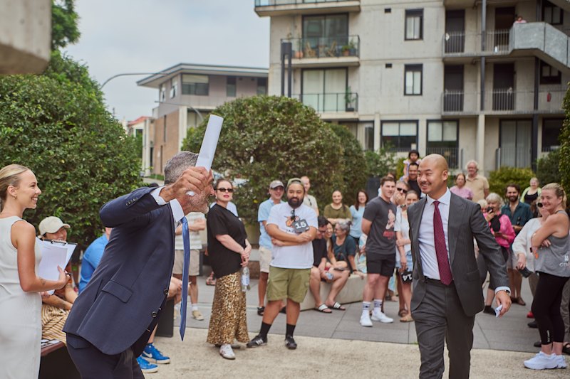 “We thought we may as well be witty in the context,” he says. The practical application of the lower roof is to maintain sunlight to the owner’s vegetable garden and chooks.