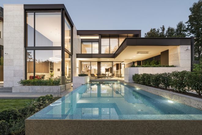 On an exclusive cul-de-sac, this brand-new Toorak mansion delivers grandeur on an epic scale, its sculptural circular staircase commanding attention as vast living spaces flow out to a sunlit poolside terrace. “It’s hard to single out just one highlight, though the seven-metre ceilings and expansive basement – with its seven-car garage, gym, steam room and bar-theatre retreat – always draw glowing praise,” says the agent.