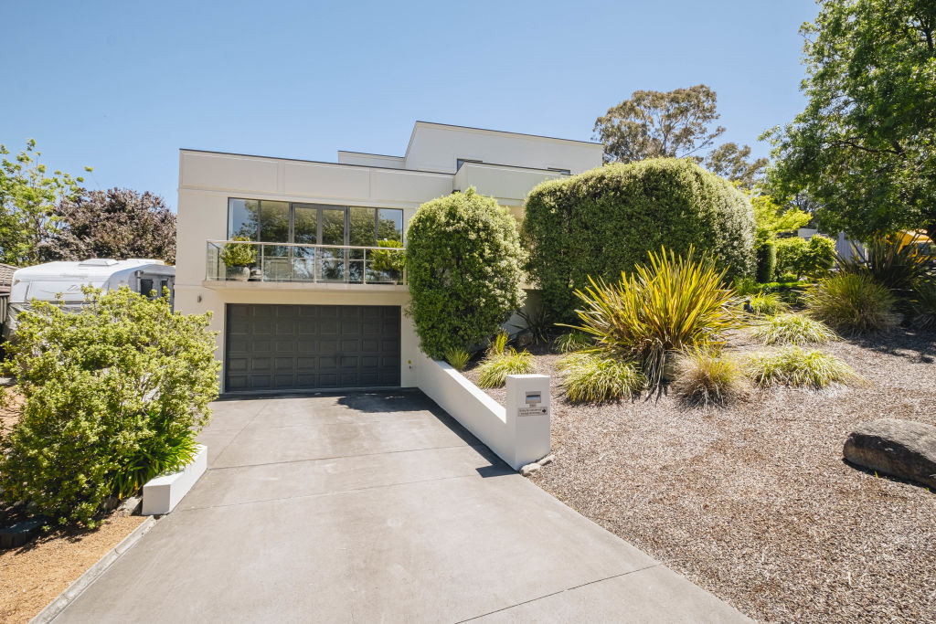 Manicured gardens, an automated watering system, and a double garage tucked underneath round out the property.