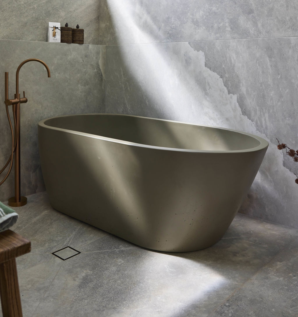 Pairing perfectly with the room’s grey and timber palettes, this is a bath you can dream of sinking into with a glass of wine.