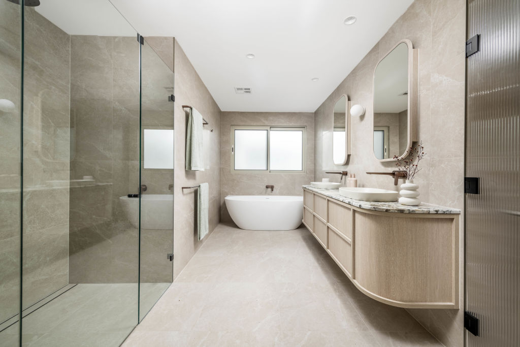 A piece de resistance, likely welcomed by all types of buyers, is the internal lift that connects the ground floor to the upper level. Upstairs, parents will revel in the expansive, highly private main-bedroom suite with its giant walk-in wardrobe and an en suite featuring the luxury of a free-standing egg-shaped bath.
