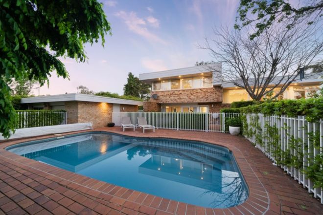 Bold shapes, crisp geometric lines and dappled bricks make for a striking facade. Inside, the house is split across three levels, and a complete refurbishment has retained the signature modernist features. Living areas are drenched in sunlight through full-height windows. A double-sided gas fireplace warms the heart of the home.